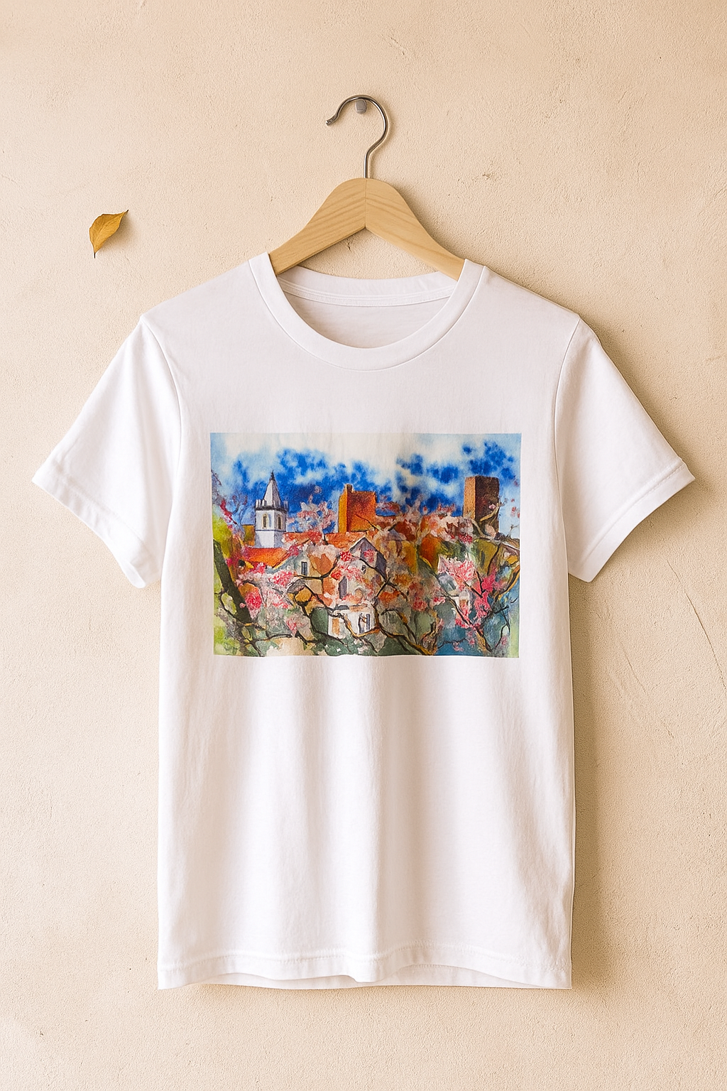 Cada pormenor mantém viva a essência da aguarela — a leveza, a cor e o ritmo